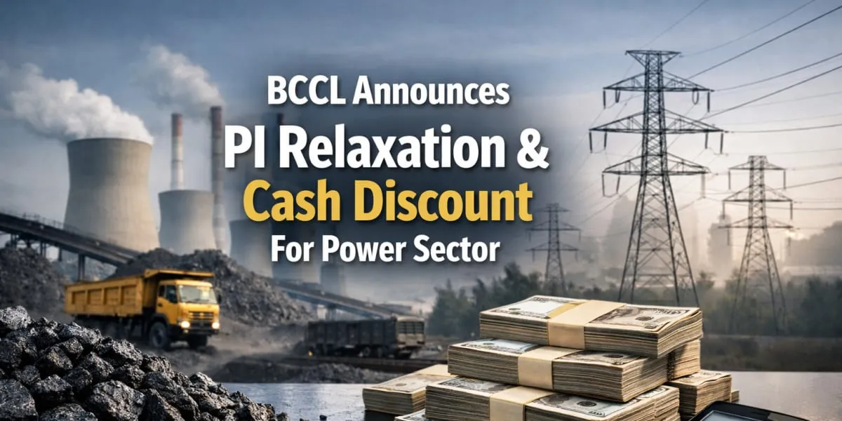 Bharat Coking Coal Limited (BCCL) has announced a scheme providing relaxation in Performance Incentive (PI) and offering a cash discount to power sector consumers for the first quarter of Financial Year 2026–27, covering April to June 2026. The scheme is applicable to all eligible power sector consumers covered under Fuel Supply Agreements (FSA), including those under the Flexi?Linkage arrangement. Incentives will be linked to actual coal offtake through rail, road and rail?cum?road (RCR) modes and implemented on the basis of proportion of offtake against the Quarterly Quantity (QQ) in defin..