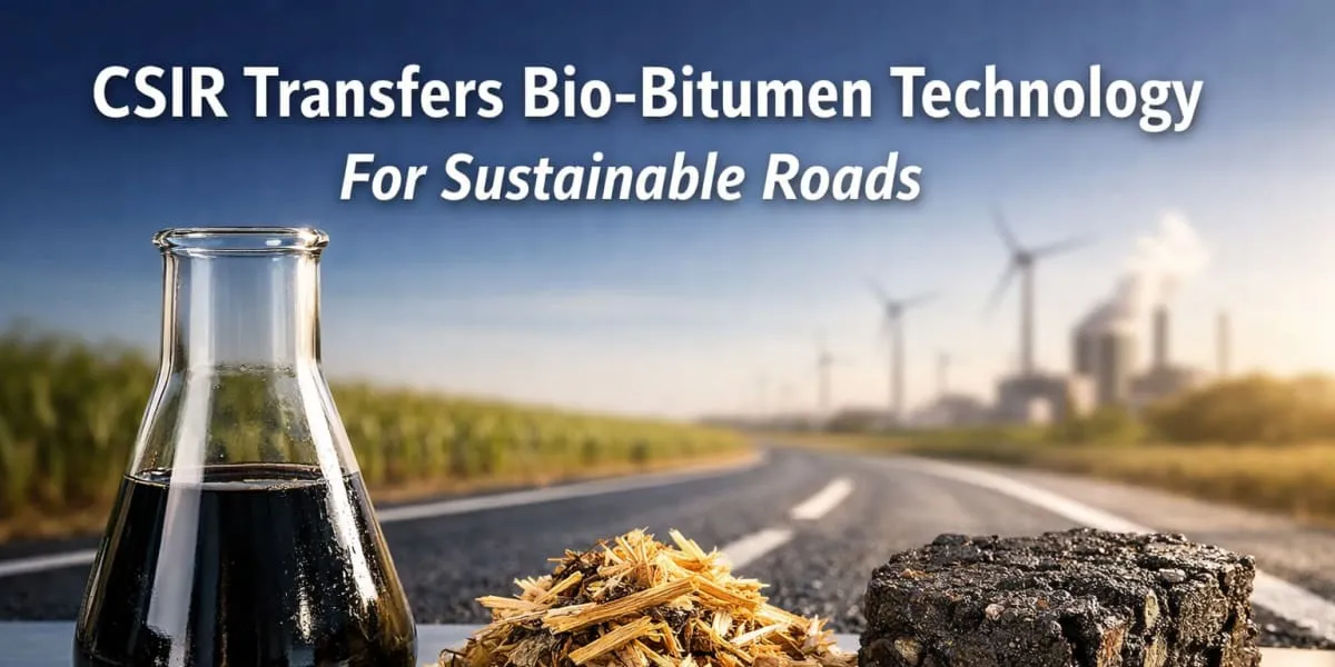 The Council of Scientific and Industrial Research (CSIR) organised a technology transfer event to promote a bio-bitumen production process derived from lignocellulosic biomass and farm residue. The process was developed jointly by the CSIR–Central Road Research Institute (CSIR-CRRI) and the CSIR–Indian Institute of Petroleum (CSIR-IIP). The event outlined how agricultural biomass can be converted into a renewable alternative to petroleum based bitumen. Senior ministers and CSIR leadership attended, including the Union Minister for Agriculture and Farmers' Welfare and Rural Development, the..